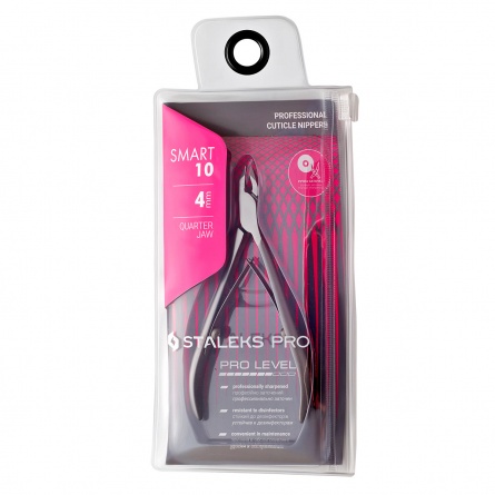 Pince à cuticules professionnelle Smart 10 - 4 mm de chez Staleks. Conçue pour retirer les petites peaux du pourtour de l'ongle en toute sécurité grâce à son excellente qualité de coupe.