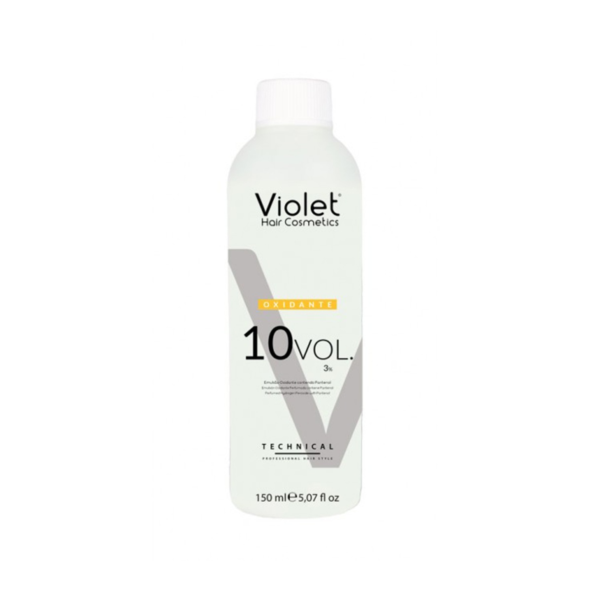 Oxydant 10 Volumes 3% de la marque Violet. Cette émulsion oxydante crémeuse et parfumée, contient du panthénol (Vitamine B5) pour prendre soin de vos cheveux. 150 ml.