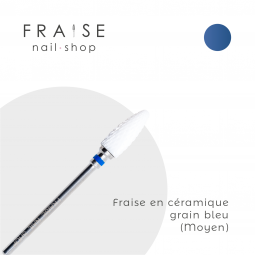 Fraise en céramique grain bleu (moyen). Embout arrondi sécurisé. Ne chauffe pas pendant la dépose et le ponçage. Idéale pour la dépose du gel, ainsi que pour affiner la forme de la construction.