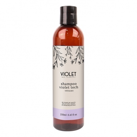 Shampoing déjaunissant intensif VIOLET TECH aux pigments violets pour cheveux blonds, décolorés et gris. Il permet de neutraliser et d'éliminer les tons jaunes indésirables. Grâce à sa formule à base de kératine et de protéines de riz, les cheveux sont lisses, hydratés, brillants et pleins de vitalité. Marque Violet. 250 ml. Cruelty free et Vegan. Formulé sans SLS, SLES, SILICONES, MINERAL OIL, et Colorants artificiels.