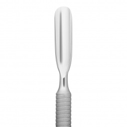 - Partie arrondie "pusher" pour soulever et pousser la cuticule en vue de son élimination ultérieure, grâce à sa petite courbure reprenant la forme de l'ongle