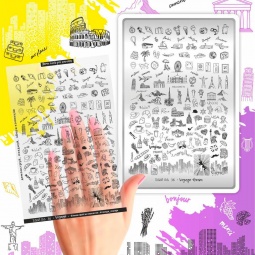 Grande Plaque de STAMPING + Pochoir - Voyage